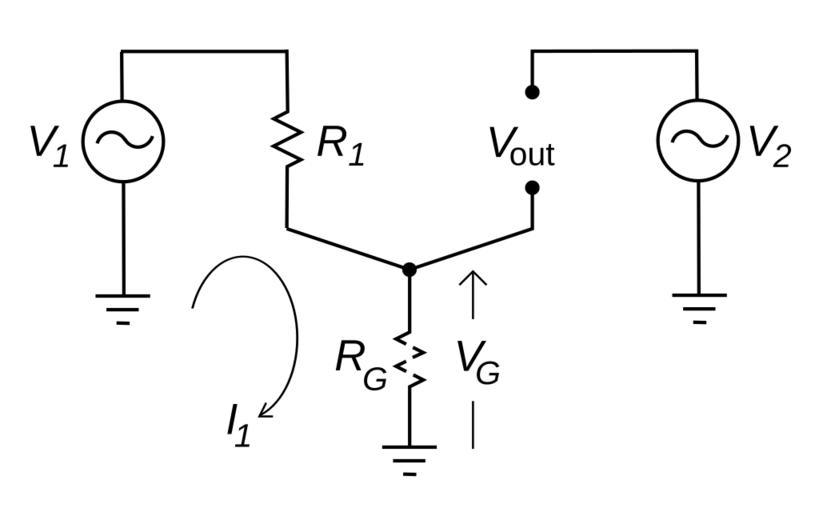 | Keywords: Ground loop.svg ground loop Two circuits share a common ground wire The voltage of the ground connection V<sub>G</sub> should ideally be zero However if the ground conductor has significant resistance R<sub>G</sub> the current flowing through it from circuit 1 will cause a voltage drop across it V<sub>G</sub> I<sub>1</sub>R<sub>G</sub> Since they share the ground wire this voltage appears as unwanted interference in the second circuit V<sub>out</sub> V<sub>2</sub> + V<sub>G</sub> Own Chetvorno 2008-09-12 I Chetvorno the author of this work release it into the public domain for any use whatever Ground loops |