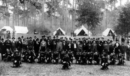 Keywords: florida state library and archives of florida statelibraryandarchivesofflorida group photo groupphoto civil war civilwar civil war veterans civilwarveterans confederate veterans confederateveterans leesburg rifles leesburgrifles h. h. duncan hhduncan mt. dora mtdora tavares chautauqua army of the grand republic armyofthegrandrepublic blackandwhite monochrome outdoor black and white Local call number: Rc11565 Title: Group portrait of Civil War veterans Date: March 29, 1895 Physical descrip: 1 photoprint; b&w; 8 x 10 in. General Note: These men are members of both camps - Confederate (Leesburg Rifles) and Grand Army of the Republic. They competed in a sham battle for Chautauqua entertainment on grounds between Mt. Dora and Tavares. H.H. Duncan is third from the left. Series Title: Reference collection Repository: State Library and Archives of Florida, 500 S. Bronough St., Tallahassee, FL 32399-0250 USA. Contact: 850.245.6700. Archives@dos.state.fl.us Persistent URL: www.floridamemory.com/items/show/34060 Local call number: Rc11565 Title: Group portrait of Civil War veterans Date: March 29, 1895 Physical descrip: 1 photoprint; b&w; 8 x 10 in. General Note: These men are members of both camps - Confederate (Leesburg Rifles) and Grand Army of the Republic. They competed in a sham battle for Chautauqua entertainment on grounds between Mt. Dora and Tavares. H.H. Duncan is third from the left. Series Title: Reference collection Repository: State Library and Archives of Florida, 500 S. Bronough St., Tallahassee, FL 32399-0250 USA. Contact: 850.245.6700. Archives@dos.state.fl.us Persistent URL: www.floridamemory.com/items/show/34060 |