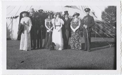 Keywords: alberta edmonton government house governmenthouse lieutenant governor lieutenantgovernor blackandwhite photo border outdoor black and white (l-r) Edith Bowen, Lt.-Gov. John Bowen, unidentified aide-de-camp, Ruth (née Bowen), Margaret Neal, Major C.V. Dacre, Andie Dacre, unidentified aide-de-camp, and Lassie in front. From the Bowen family fonds, PR2009.0215/2_56. (l-r) Edith Bowen, Lt.-Gov. John Bowen, unidentified aide-de-camp, Ruth (née Bowen), Margaret Neal, Major C.V. Dacre, Andie Dacre, unidentified aide-de-camp, and Lassie in front. From the Bowen family fonds, PR2009.0215/2_56. |