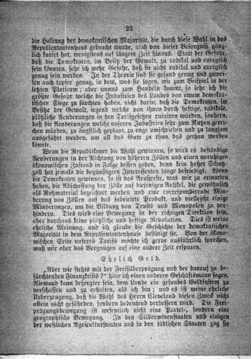 | Keywords: Grover-Cleveland-1892-de-p23.JPG en Image of page 23 of the pamphlet Carl Schurz an die Wähler ohne Unterschied der Partei Warum sie für Cleveland stimmen sollen Pamphlet courtesy of the Boston Public Library Carl Schurz 1892-09-08 PD-old Warum die Wähler für Cleveland stimmen sollen Seitebilder |