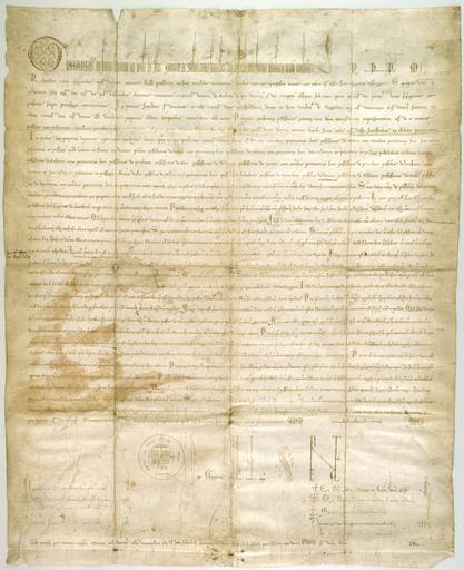 Keywords: Grzegorz IX papiez bierze pod opieke klasztor w Sulejowie.jpg Artwork Grzegorz IX pl Grzegorz IX papież bierze pod swoją opiekę klasztor cystersów w Sulejowie i zatwierdza jego prawa 1229-06-19 parchement 58 8 x 70 6 + 1 6 cm Institution Archiwum Główne Akt Dawnych brak bulli; przetarty poplamiony; podpis papieża i 9 kardynałów oraz znaki rota - Fac mecum Domine signum in bonum i monogram z życzeniami BENE VALETE; Dawne sygn BOZ 13; No 3 tio Miejsce powstania Perugia Język dokumentu łac Druk/rękopis rękopis Forma oryginał Wydanie drukiem KDMłp t 2 nr 398 s 41-45 Reg Mitkowski nr 15 s 304; Bull Pol t 1 nr 246 AGAD Zbiór Dokumentów Pergaminowych nr 6430 AGAD partnership PD-old-100 Documents from Archiwum Główne Akt Dawnych |