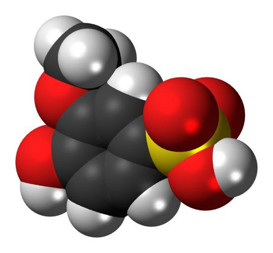 | Keywords: Guaiacolsulfonate molecule spacefill.png Space-filling model of the guaiacolsulfonate molecule an expectorant drug C H O S 2012-07-21 own DS Visualizer Jynto more from this user Ball-and-stick version cc-zero Images by Jynto Respiratory system drugs Phenolsulfonic acids Hydroxyanisoles Space-filling models |