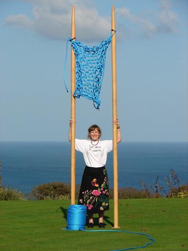 Keywords: Guinness World Record Knitting Needles.jpeg en Julia Hopson of Knit Wits Penzance Cornwall with the 'Guinness World Record' for knitting with 'the largest knitting needles in the world' More Detailshttp //www knitwitspenzance co uk/news php n_id 8 Own Newland 2 2006-09-23 Knitting needles and tools Guinness World Records