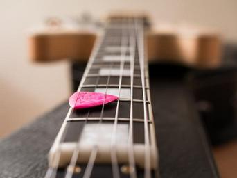 Keywords: guitar guitar pick electric guitar strings saddle instrument music pink
