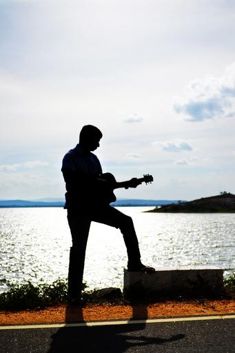 Keywords: guitarist silhouette sunset song music guitar musician musical performer person instrument