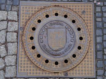 | Keywords: Gullideckel in Gotha.JPG de Gullideckel in Gotha Thüringen en Manhole cover in Gotha Thuringia Germany 2015-02-22 12 29 59 own Aschroet other versions other fields 1 inscription inscription <small>D400-F900 EN 124 DIN 19584</small><br /><br />Gotha<br />Residenzstadt de 50 949626388889 10 706919722222 heading 52 cc-zero Uploaded with UploadWizard Manhole covers in Thuringia |