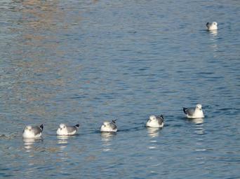 Keywords: gulls water swim formation group suspended outsider alone lonely lost