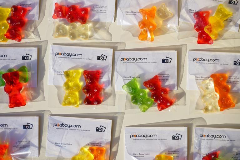 Keywords: gummi bears packed sachets mitbringsel cellophane fruit gums business cards pixabay company bear sweetness colorful color gelatin food nibble gummibärchen bears sweet delicious fruit jelly gold bears haribo