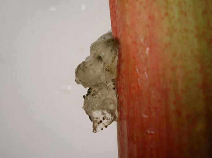 Keywords: Gummosis on Rhubarb caused by Lixus concavus.JPG en Sap gummosis on Rhubarb Rheum caused by the Weevil Lixus concavus own Rosser1954 Roger Griffith Gummosis Lixus concavus Rhubarb