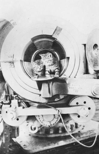 Keywords: black and white blackandwhite blackandwhite monochrome black and white ID no: P04975.003 Photographer: David Lewis Price Place: at sea, on board HMAT Borda Two kittens, mascots of Australian troop transport HMAT Borda, in the open barrel of the breech loading Quick Fire gun. Rights info: no known copyright restrictions This photograph is from the Australian War Memorial's collection www.awm.gov.au Persistent URL www.awm.gov.au/collection/P04975.003/ ID no: P04975.003 Photographer: David Lewis Price Place: at sea, on board HMAT Borda Two kittens, mascots of Australian troop transport HMAT Borda, in the open barrel of the breech loading Quick Fire gun. Rights info: no known copyright restrictions This photograph is from the Australian War Memorial's collection www.awm.gov.au Persistent URL www.awm.gov.au/collection/P04975.003/ |