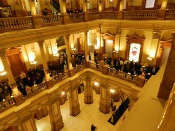 Keywords: indoor hall dining room dining room Lines of people wait to testify on the gun control bills. Learn more at www.ColoradoSenateNews.com Lines of people wait to testify on the gun control bills. Learn more at www.ColoradoSenateNews.com