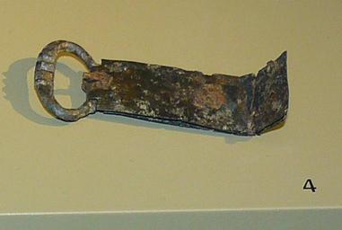 Keywords: Gürtelschnalle-Kasendorf 13tes Jh.JPG en Belt buckle 13th century from Kasendorf Franconia Germany in the Archaeological Museum Forchheim de Bronzene Gürtelschnalle mit Eisendorn und ritzverziertem Blechbeschlag 13 Jahrhundert Gefunden am Turmberg in Kasendorf Franken Deutschland Ausgestellt im Archäologie-Museum Oberfranken in Forchheim own Völkerwanderer 2010-05-09 Belt buckles 13th century Cc-zero |