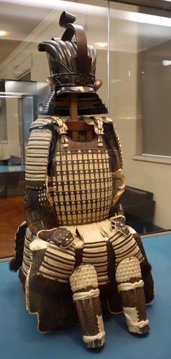 Keywords: Gusoku type armor, Edo period, 17th century, two-piece cuirass with white lacing - Tokyo National Museum - DSC05927.JPG en Exhibit in the Tokyo National Museum Tokyo Japan This artwork is old enough so that it is in the public domain 2013-09-03 00 12 02 own Daderot cc-zero Japanese armour at the Tokyo National Museum Uploaded with UploadWizard |
