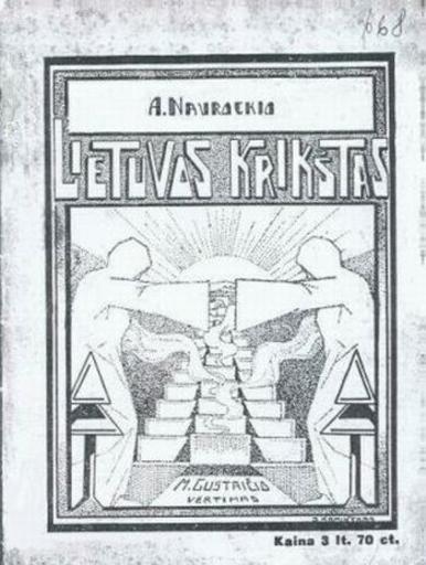 | Keywords: Gustaitis2.jpg The cover of book A A Navrockij Lietuvos Krikštas Eilėtinė penkių veiksmų drama M Gustaičio vertimas iš rusų kalbos Kaunas-Marijampolė Dirvos bendrovė 1927 Scan by Alma Pater 2005-04-17 own assumed Alma Pater 1927 Books from Lithuania Motiejus Gustaitis |