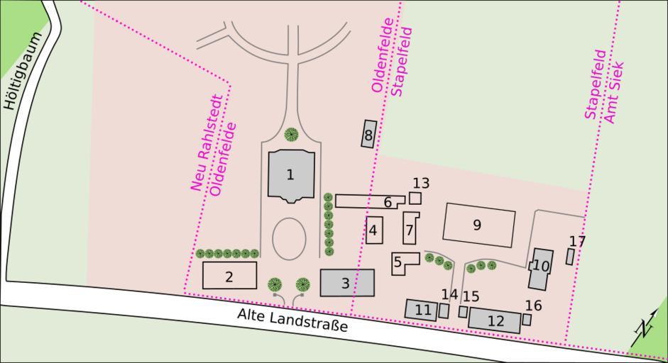 | Keywords: Gut Höltigbaum 1921.svg de SVG Grafik nach einer Karte von 1921 vom Gut Höltigbaum aus dem Buch Unser Oldenfelde Höltigbaum_1921 jpg 50 MagentaGreen 26 11 15 <gallery> Gut Höltigbaum 2015 svg Plan 2015 </gallery> other fields Die Nummern im Bild bezeichnen die Gebäude wie folgt <br /> 1 Herrenhaus Höltigbaum<br /> 2 Scheune<br /> 3 Kuhstall<br /> 4 Pferdestall<br /> 5 Elektrizitätswerk<br /> 6 Remise I<br /> 7 Remise II<br /> 8 Waschhaus<br /> 9 Kornscheune<br /> 10 Verwalterhaus<br /> 11 Arbeiterhaus<br /> 12 Arbeiterhaus<br /> 13 Eishaus<br /> 14 “17 Ställe<br /> <br /> Gebäude die im Jahr 2015 noch erhalten waren sind grau gefüllt dargestellt <br /><br /> validSVG <br /> Herrenhaus Höltigbaum |
