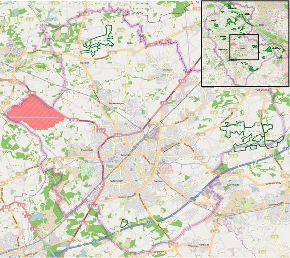 | Keywords: Gütersloh - nature reserves.png Nature reserves in Gütersloh - overview map<br/>Number and borders of nature reserves are subject to frequent change In order to facilitate reproduction of this map from openstreetmap the following data is stored here <br/> export boundaries north 51 98; west 8 28 south 51 854; east 8 28 mapnik svg scale 1 70 000<br/> nature reserve boundary stroke weight 3 5; <br/>nature reserve stroke color R 5 G 102 B 36; <br/>district border stroke weight 20 Naturschutzgebiete in Gütersloh - à bersichtskarte Gütersloh - vue d'ensemble Own based on http //www openstreetmap org/ Open Street Map 2011-04-06 Hagar66 Maps of Gütersloh Nature reserves in Kreis Gütersloh Cc-zero |