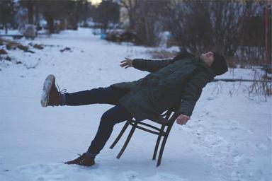 Keywords: guy man winter snow chair boots jacket hat toque beanie people