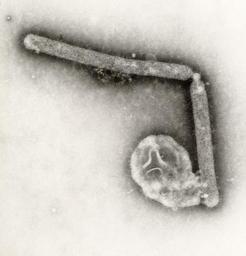 | Keywords: H5N1 virions 108,000x.jpg ID 8038 Description This transmission electron micrograph TEM taken at a magnification of 108 000x revealed the ultrastructural details of two avian influenza A H5N1 virions a type of bird flu virus which is a subtype of avian influenza A At this magnification one may note the stippled appearance of the roughened surface of the proteinaceous coat encasing each virion Photo Credit Cynthia Goldsmith/ Jackie Katz H5N1 source http //phil cdc gov/PHIL_Images/8038/8038_lores jpg PD-USGov |
