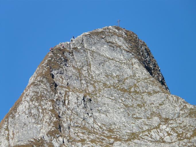 Keywords: höfats ridge east summit summit cross mountains summit mountaineer climbing steep exposed mountain allgäu allgäu alps alpine hiking mountain hiking rock south southeast ridge pink south east wall