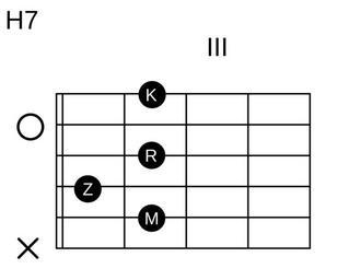 Keywords: H-Dur-7.svg Guitar Accord H-7 Own 2007-03-03 Stefan Ott Guitar chords in standard tuning B major