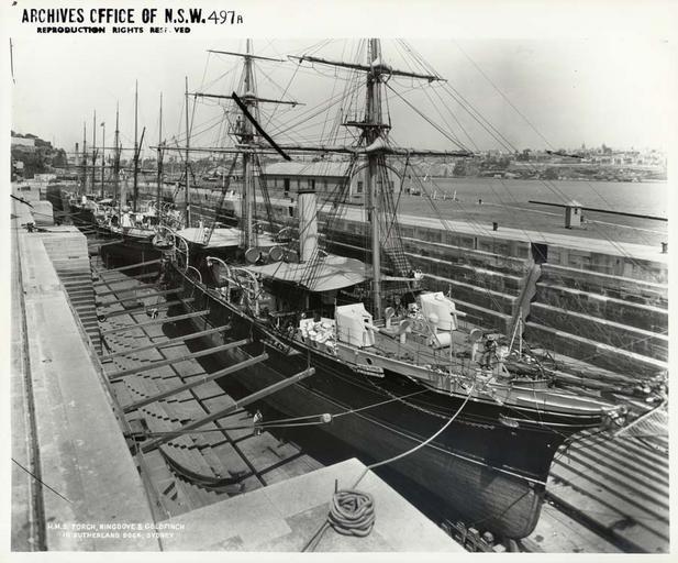 Keywords: archives state records nsw staterecordsnsw newsouthwales blackandwhite hms torch hmstorch hms ringdove hmsringdove hms goldfinch hmsgoldfinch sutherland dock sutherlanddock sydney people sailors ships black and white H.M.S. Torch, Ringdove and Goldfinch in Sutherland Dock, Sydney Dated: Year only 1898 Digital ID: 4481_a026_000456 Rights: www.records.nsw.gov.au/about-us/rights-and-permissions We'd love to hear from you if you use our photos/documents. Many other photos in our collection are available to view and browse on our website using Photo Investigator. H.M.S. Torch, Ringdove and Goldfinch in Sutherland Dock, Sydney Dated: Year only 1898 Digital ID: 4481_a026_000456 Rights: www.records.nsw.gov.au/about-us/rights-and-permissions We'd love to hear from you if you use our photos/documents. Many other photos in our collection are available to view and browse on our website using Photo Investigator. |