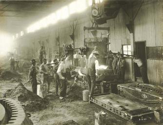 Keywords: archives state records nsw staterecordsnsw newsouthwales blackandwhite people steel works steelworks sydney alexandria workers forge oh&s ohs monochrome black and white Pouring first steel casting at Hadfields Works - Alexandria (from the Sydney Harbour Bridge photo albums) Dated: 3/12/1925 Digital ID: 12685_a007_a00704_8726000042r Rights: www.records.nsw.gov.au/about-us/rights-and-permissions We'd love to hear from you if you use our photos. Many other photos in our collection are available to view and browse on our website using Photo Investigator. Pouring first steel casting at Hadfields Works - Alexandria (from the Sydney Harbour Bridge photo albums) Dated: 3/12/1925 Digital ID: 12685_a007_a00704_8726000042r Rights: www.records.nsw.gov.au/about-us/rights-and-permissions We'd love to hear from you if you use our photos. Many other photos in our collection are available to view and browse on our website using Photo Investigator. |