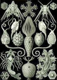 Keywords: Haeckel Amphoridea.jpg See http //caliban mpiz-koeln mpg de/haeckel/kunstformen/high/Tafel_095_schema_300 html here for index to numbers Placocystis crustacea <small> Haeckel </small> Enoploura balanoides <small> Meek 1872 </small> 1a from above 1b from below See Echinodermata Pleurocystis filitexta <small> Billings </small> Pleurocystites filitextus <small>Billings 1854</small> 2a from above 2b from below See Pleurocystites Orocystis Helmhackeri <small> Barrande </small> Orocystites helmhackeri <small> Barrande 1887 </small> 3b single armour plate See Rhombifera Deutocystis modesta <small> Barrande </small> Echinosphaerites sp juvenile See Echinosphaerites Citrocystis citrus <small> Haeckel </small> / Echinosphaera citrus <small> Kloeden </small> Echinosphaerites kloedeni <small>Jaekel 1899</small> 5b 5c single armour plates See Echinosphaerites Acanthocystis briareus <small> Barrande </small> Acanthocystites briareus <small>Barrande 1887</small> See Gogiida Aristocystis bohemica <small> Barrande </small> Aristocystites bohemicus <small>Barrande 1887</small> single armour plate See Echinodermata Ophiothrix fragilis <small> J Müller </small> Ophiothrix fragilis <small> Abildgaard 1789 </small> juvenile See Ophiothrix fragilis Pluteus bimaculatus <small> J Müller </small> / Ophiura filiformis Ophiuridae sp pluteus larva See Ophiuridae Plutellus aequituberculatus <small> J Müller </small> / Echinocidaris aequituberculata Arbacia lixula <small> Linnaeus 1758 </small> pluteus larva See Arbacia lixula Bipinnaria asterigera <small> J Müller </small> / Luidia sarsi Luidia sarsi <small>Düben Koren 1845</small> bipinnaria larva See Luidia sarsi Auricularia nudibranchiata <small> Chun </small> Protankyra brychia <small> Verrill 1885 </small> auricularia larva See Protankyra brychia Kunstformen der Natur 1904 plate 95 Amphoridea see http //caliban mpiz-koeln mpg de/haeckel/kunstformen/high/Tafel_095_300 html here http //caliban mpiz-koeln mpg de/haeckel/kunstformen/high/Tafel_095_schema_300 html here http //caliban mpiz-koeln mpg de/haeckel/kunstformen/high/Tafel_095_text_1_200 html here and http //caliban mpiz-koeln mpg de/haeckel/kunstformen/high/Tafel_095_text_2_200 html here creator Ernst Haeckel 1904 public domain due to age File Haeckel Amphoridea-1a jpg File Haeckel Amphoridea-1b jpg File Haeckel Amphoridea-2a jpg File Haeckel Amphoridea-2b jpg File Haeckel Amphoridea-3 jpg File Haeckel Amphoridea-3b jpg File Haeckel Amphoridea-4 jpg File Haeckel Amphoridea-5 jpg File Haeckel Amphoridea-5b jpg File Haeckel Amphoridea-5c jpg File Haeckel Amphoridea-6 jpg File Haeckel Amphoridea-7 jpg File Haeckel Amphoridea-8 jpg File Haeckel Amphoridea-9 jpg File Haeckel Amphoridea-10 jpg File Haeckel Amphoridea-11 jpg File Haeckel Amphoridea-12 jpg PD-old Kunstformen der Natur 1904 Echinodermata Pleurocystites Rhombifera Echinosphaerites Gogiida Ophiothrix fragilis Ophiuridae Arbacia lixula Luidia sarsi Protankyra brychia Science and technology in art |