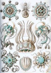 Keywords: Haeckel Narcomedusae.jpg center Pegantha pantheon <small> Haeckel </small> Pegantha pantheon <small>Haeckel 1879</small> side view bottom center Pegantha pantheon <small> Haeckel </small> Pegantha pantheon <small>Haeckel 1879</small> single bell lobe top left Aeginura myosura <small> Haeckel </small> Aeginura grimaldii <small>Maas 1904</small> bottom view top right Solmaris Godeffroyi <small> Haeckel </small> Pegantha godeffroyi <small> Haeckel 1879 </small> bottom view center left Cunarcha aeginoides <small> Haeckel </small> Aegina citrea <small>Eschscholtz 1829</small> side view bottom left Cunarcha aeginoides <small> Haeckel </small> Aegina citrea <small>Eschscholtz 1829</small> top view top center Cunarcha aeginoides <small> Haeckel </small> Aegina citrea <small>Eschscholtz 1829</small> auditory tentacle center right Cunantha primigenia <small> Haeckel </small> Aegina sp young medusa side view bottom right Cunoctantha discoidalis <small> Haeckel </small> Cunina octonaria <small>McCrady 1857</small> top view Kunstformen der Natur 1904 plate 16 Narcomedusae see http //caliban mpiz-koeln mpg de/haeckel/kunstformen/high/Tafel_016_300 html here http //caliban mpiz-koeln mpg de/haeckel/kunstformen/high/Tafel_016_text_1_200 html here and http //caliban mpiz-koeln mpg de/haeckel/kunstformen/high/Tafel_016_text_2_200 html here creator Ernst Haeckel 1904 Aeginura grimaldii by Haeckel png PD-old-auto-1923 1919 Kunstformen der Natur 1904 Narcomedusae Pegantha pantheon Pegantha godeffroyi Aegina citrea |