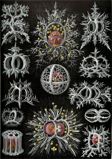 | Keywords: Haeckel Stephoidea.jpg Assessments 1 top center Lithocircus magnificus <small> Haeckel </small> Lithocircus sp living animal top left Semantis sigillum <small> Haeckel </small> Tholospyris procera <small>Goll 1969</small> skeleton of juvenile bottom left upper Acanthodesmia corona <small> Haeckel </small> Acanthodesmia sp skeleton center right upper Tristephanium dimensivum <small> Haeckel </small> Tristephanium dimensivum <small>Haeckel 1887</small> skeleton center Trissocyclus sphaeridium <small> Haeckel </small> Trissocyclidae sp living animal center right lower Octotympanum cervicorne <small> Haeckel </small> Acanthodesmia viniculata <small> Müller 1857 </small> skeleton bottom right upper Microcubus zonarius <small> Haeckel </small> Amphispyris zonarius <small> Haeckel 1887 </small> skeleton top right Tympaniscus tripodiscus <small> Haeckel </small> Trissocyclidae sp skeleton center left upper Tympaniscus quadrupes <small> Haeckel </small> Trissocyclidae skeleton bottom center Tympanidium foliosum <small> Haeckel </small> Tympanidium foliosum <small>Haeckel 1887</small> living animal bottom left lower Lithotympanum tuberosum <small> Haeckel </small> Lithotympanum tuberosum <small>Haeckel 1887</small> living animal center left lower Circotympanum octogonium <small> Haeckel </small> Nassellaria sp </small> skeleton bottom right lower Lithocubus astragalus <small> Haeckel </small> Lithocubus ap living animal Kunstformen der Natur 1904 plate 71 Stephoidea see http //caliban mpiz-koeln mpg de/haeckel/kunstformen/high/Tafel_071_300 html here http //caliban mpiz-koeln mpg de/haeckel/kunstformen/high/Tafel_071_text_1_200 html here and http //caliban mpiz-koeln mpg de/haeckel/kunstformen/high/Tafel_071_text_2_200 html here creator Ernst Haeckel 1904 public domain due to age <gallery>File Haeckel Stephoidea edit jpg Edited for dust contrast and uneven border</gallery> PD-old Kunstformen der Natur 1904 Radiolaria |
