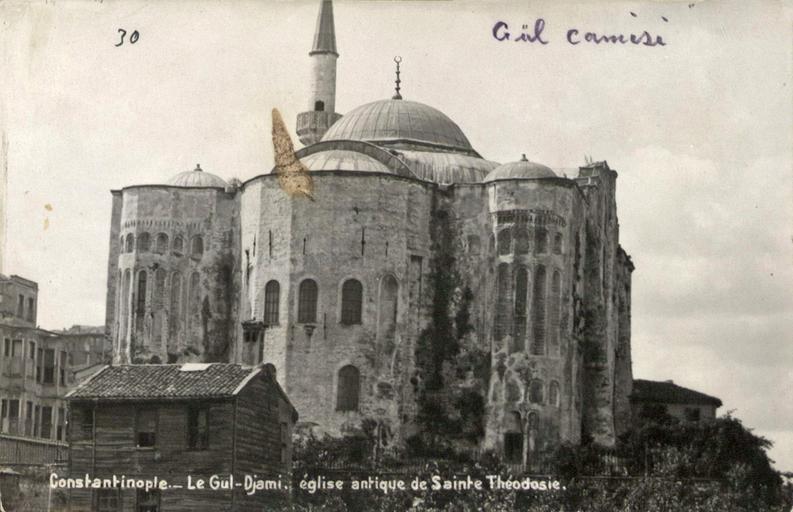 | Keywords: salt araştırma saltaraştırma salt research saltresearch salt online saltonline gül camii gülcamii hagia theodosia kilisesi hagiatheodosiakilisesi ayia theodosia ayiatheodosia doğu roma dönemi doğuromadönemi adile sultan halk kütüphanesi adilesultanhalkkütüphanesi bizans ayakapı i̇stanbul istanbul gül mosque gülmosque hagia theodosia church hagiatheodosiachurch byzantine period byzantineperiod byzantine adile sultan public library adilesultanpubliclibrary outdoor www.archives.saltresearch.org/R/-?func=dbin-jump-full&amp... Hagia Theodosia Church, (Gül Mosque today), located in Ayakapı in İstanbul, is a religious building from the Byzantine period. It was built during the 10th or 11th centuries. After the conquest of İstanbul, the building served local shipyards as a warehouse for shiping equipment. It was converted into a mosque in 1499 and a minaret was added to the building during the period of Selim II. After being destroyed by fire in 1633, the building was renovated. A further, more extensive restoration was undertaken on the order of Mahmud II (1808-1839). After being used as the Adile Sultan Public Library for some years, the building is empty today. SALT Research, Photography Archive Gül Camii olarak bilinen Hagia Theodosia Kilisesi Ayakapı’da yer alır. Doğu Roma döneminden kalma yapının 10. ya da 11. yüzyılda inşa edildiği düşünülmektedir. Kilise, İstanbul’un fethinden sonra bir süre, Haliç’teki tersanelerin malzeme deposu olarak kullanıldı. 1499’da camiye çevrildi, II. Selim zamanında minaresi eklendi. 1633’te geçirdiği bir yangının ardından onarılsa da, geniş kapsamlı onarımı II. Mahmut zamanında (1808-1839) gerçekleştirildi. Bir dönem Adile Sultan Halk Kütüphanesi olarak kullanılan yapı bugün atıl vaziyette durmaktadır. SALT Araştırma, Fotoğraf Arşivi www.archives.saltresearch.org/R/-?func=dbin-jump-full&amp... Hagia Theodosia Church, (Gül Mosque today), located in Ayakapı in İstanbul, is a religious building from the Byzantine period. It was built during the 10th or 11th centuries. After the conquest of İstanbul, the building served local shipyards as a warehouse for shiping equipment. It was converted into a mosque in 1499 and a minaret was added to the building during the period of Selim II. After being destroyed by fire in 1633, the building was renovated. A further, more extensive restoration was undertaken on the order of Mahmud II (1808-1839). After being used as the Adile Sultan Public Library for some years, the building is empty today. SALT Research, Photography Archive Gül Camii olarak bilinen Hagia Theodosia Kilisesi Ayakapı’da yer alır. Doğu Roma döneminden kalma yapının 10. ya da 11. yüzyılda inşa edildiği düşünülmektedir. Kilise, İstanbul’un fethinden sonra bir süre, Haliç’teki tersanelerin malzeme deposu olarak kullanıldı. 1499’da camiye çevrildi, II. Selim zamanında minaresi eklendi. 1633’te geçirdiği bir yangının ardından onarılsa da, geniş kapsamlı onarımı II. Mahmut zamanında (1808-1839) gerçekleştirildi. Bir dönem Adile Sultan Halk Kütüphanesi olarak kullanılan yapı bugün atıl vaziyette durmaktadır. SALT Araştırma, Fotoğraf Arşivi |
