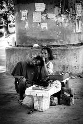 Keywords: hair cutter hairdresser street poor third world street photograpy black and white