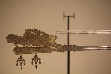 | Keywords: Hairpin-IMG 0445.JPG artist object type hairpin LangSwitch between 618 CE 907 CE Silver goldened Institution Musée Guimet object history credit line ProvenanceEvent purchase 1946 MA97 ProvenanceEvent purchase 1963 MA2557 and MA2558 accession number MA97 MA2557 or MA2558 Rama own artwork license PD-old-100 photo license Cc-by-sa-3 0-fr Cc-by-sa-2 0-fr CeCILL Rama other versions Collections of the Musée Guimet | ||||