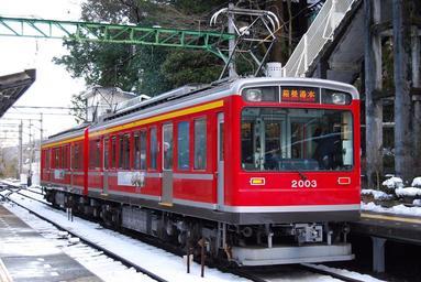 Keywords: Hakone tozan Railway EMU type 2000.JPG ja 箱根登山鉄道2000系2両編成(大平台駅) 投稿 が撮影 toshinori baba 2011-02-13 Cc-zero Hakone Tozan 2000 series Trains in snow in Japan