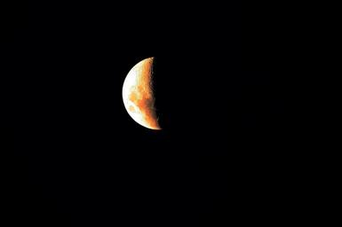 Keywords: half-moon moon half round orb topography rusty coloured night