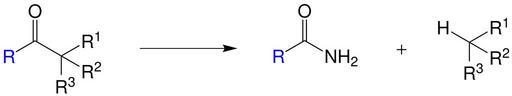| Keywords: Haller-Bauer reaction Ü2-Seite001.svg en process of the Haller-Bauer reaction if one of the alkyl rests R<sup>1</sup> till R<sup>3</sup> stabilising the molecule de bersichtsreaktion der Haller-Bauer-Reaktion bei der eines der Alkylreste R<sup>1</sup> bis R<sup>3</sup> stabilisierend auf das Molekül wirken own бе еста 2014-02-17 Organic reactions Cc-zero |