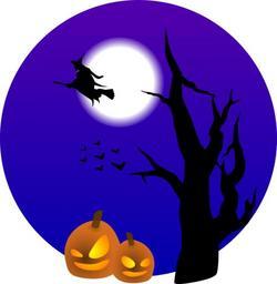 Keywords: halloween bats full moon pumpkin scene tree witch flying scary