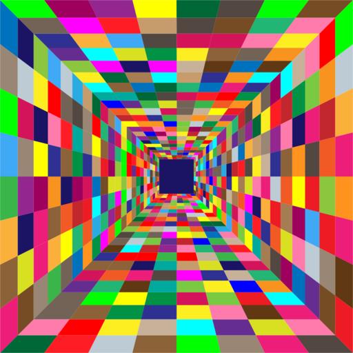 Keywords: hallway corridor perspective first person view tunnel 3d viewpoint colorful prismatic chromatic rainbow geometric abstract art