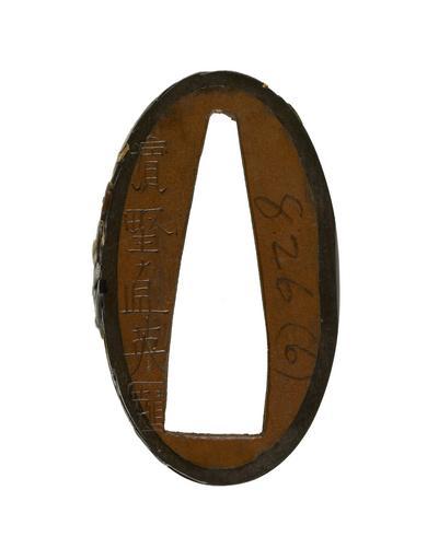 Keywords: Hamano Naohide - Fuchi with the Chinese General Kanyu - Walters 511068 - Mark A.jpg This is the 2nd-century Chinese general Kanyu Ch Guan Yu Kuan Yu Stories of his activities during the Three Kingdoms period are told in the 14th-century novel Romance of the Three Kingdoms He is recognizable by his long black beard A scroll is on the desk before him and his halberd is on the reverse This is part of a set with Walters 51 1069 1st half Other date century 19 late Edo shibuichi nigurome copper gold cm 3 7 l accession number 51 1068 29916 William T / Henry Walters Collection Baltimore date and mode of acquisition unknown Walters Art Museum Henry Walters Acquired by William T or Henry Walters Signature Hamano Naohide kakihan ; Number In pencil 826 6 place of origin Takata Japan Walters Art Museum license Fuchi in the Walters Art Museum Hamano Naohide Media contributed by the Walters Art Museum needs category review |
