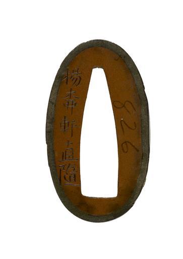 Keywords: Hamano Naoyuki - Fuchi with Basket of Peaches on a Table - Walters 511034 - Mark A.jpg At the right a basket with four peaches is depicted on a Chinese style writing table Clouds swirl around the right of the table Peaches are a symbol of longevity because peaches from a mythical garden were said to give immortality to those who ate them This is part of a set with Walters 51 1035 between 1773 1829 Edo shibuichi gold cm 3 7 l accession number 51 1034 33211 William T / Henry Walters Collection Baltimore date and mode of acquisition unknown Walters Art Museum Henry Walters Acquired by William T or Henry Walters Signature Yôryûken Naoyuki; Number In pencil 826 place of origin Niigata Japan Walters Art Museum license Fuchi in the Walters Art Museum Hamano Naoyuki Media contributed by the Walters Art Museum needs category review |