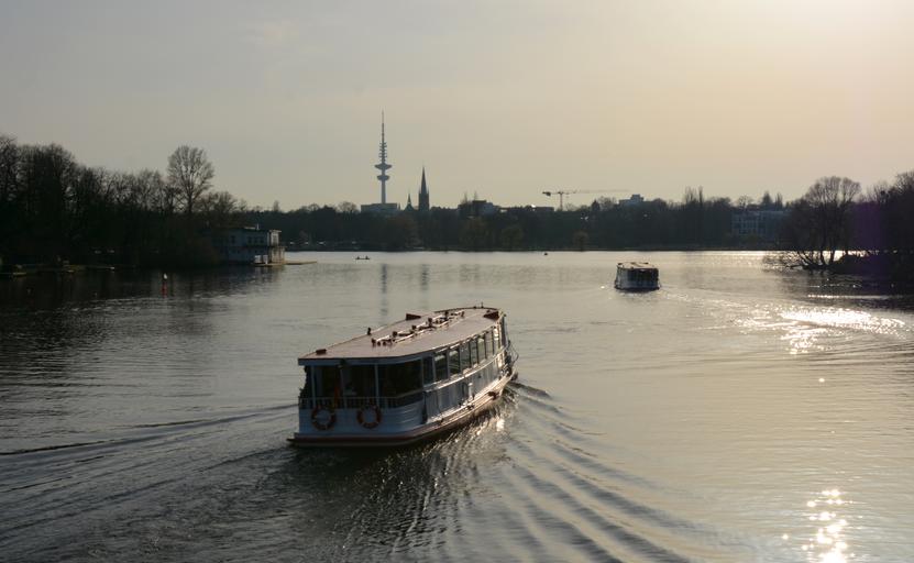Keywords: hamburg alster mood ships abendstimmung alster steamer boot