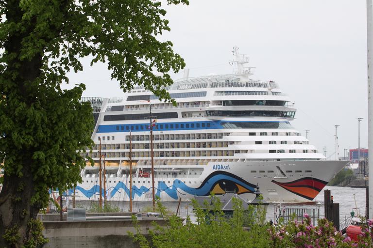 Keywords: hamburg elbe port hafengeburtstag landungsbrücken boats ship water sea ocean sky aida driving cruise ship