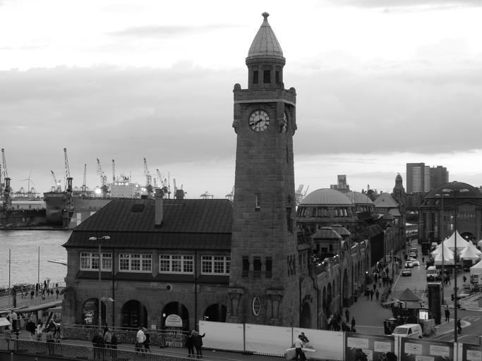 Keywords: hamburg landungsbrücken northern germany elbe port landmark city building container historically harbour cranes port city water