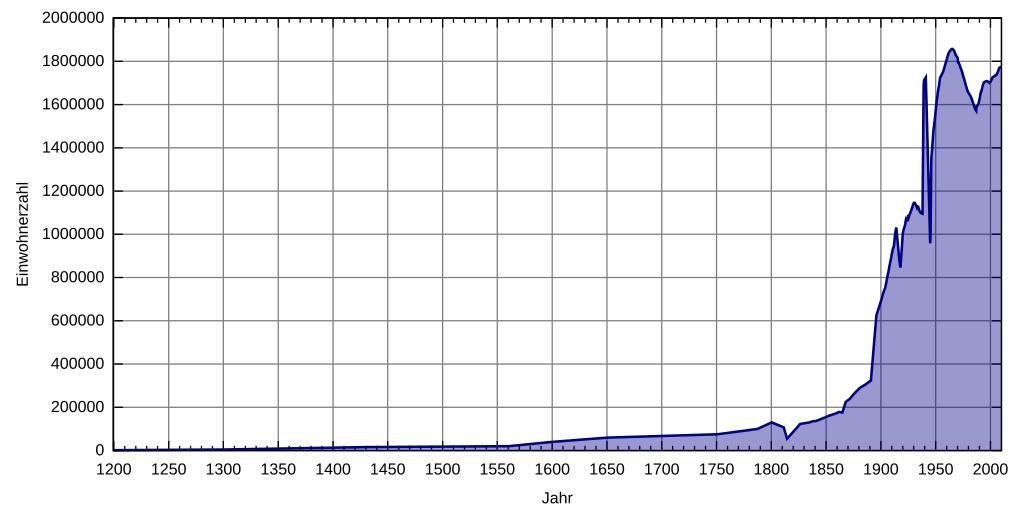 Keywords: Hamburg population.svg en Hamburg population statistics since 1200 de Einwohnerentwicklung von Hamburg seit 1200 own ; data from de Einwohnerentwicklung_von_Hamburg Gorgo 2011-03-06 Gnuplot script to generate this plot gnuplot <source lang gnuplot > /usr/bin/gnuplot gnuplot 4 2 / Ubuntu 8 10 input set timefmt d m Y set datafile separator ; output unset key set style data lines set style fill transparent solid 0 4 set grid set xdata time set xlabel 'Jahr' set xrange '01 01 1200' '31 12 2011' set xtics 1576800000 set mxtics 5 set format x ' Y' set ylabel 'Einwohnerzahl' set ytics 200000 set format y ' 0f' set term svg size 800 400 font Arial 10 set output 'hamburg_population svg' plot '-' using 1 2 with filledcurves below x1 lt rgb 'dark-blue' lw 2 30 06 1800;130000 30 06 1811;106983 30 06 1814;55000 30 06 1826;122861 03 12 1834;130385 03 12 1837;135375 03 12 1840;136956 03 12 1846;148754 03 12 1852;161390 03 12 1855;166148 03 12 1858;171696 03 12 1861;178841 03 12 1864;175700 03 12 1867;225074 01 12 1871;240251 01 12 1875;264675 01 12 1880;289859 01 12 1885;305690 01 12 1890;323923 02 12 1895;625552 01 12 1900;705738 31 12 1901;725971 31 12 1902;739747 31 12 1903;754261 31 12 1904;776354 01 12 1905;802793 31 12 1906;830578 31 12 1907;856226 31 12 1908;881874 31 12 1909;907522 01 12 1910;931035 31 12 1911;946236 31 12 1912;1000903 31 12 1913;1031480 01 12 1916;876833 05 12 1917;846055 08 10 1919;985779 31 12 1919;1004427 31 12 1920;1026989 31 12 1921;1041057 31 12 1922;1071924 31 12 1923;1066991 31 12 1924;1089091 16 06 1925;1079126 31 12 1925;1087049 31 12 1926;1101132 31 12 1927;1115511 31 12 1928;1131599 31 12 1929;1145014 31 12 1930;1145124 31 12 1931;1135317 31 12 1932;1123500 16 06 1933;1129307 31 12 1933;1127917 31 12 1934;1112195 31 12 1935;1101105 31 12 1936;1096796 31 12 1937;1094715 31 12 1938;1689100 17 05 1939;1711877 31 12 1940;1725500 31 12 1944;958247 01 05 1945;1004325 31 12 1945;1350278 29 10 1946;1403300 31 12 1947;1482639 31 12 1948;1518900 13 09 1950;1605606 31 12 1951;1658038 31 12 1952;1687190 31 12 1953;1722819 25 09 1956;1751289 06 06 1961;1832346 31 12 1961;1840543 31 12 1962;1847523 31 12 1963;1854637 31 12 1964;1857431 31 12 1965;1854361 31 12 1966;1847267 31 12 1967;1832560 31 12 1968;1822837 31 12 1969;1817122 27 05 1970;1793823 31 12 1970;1793640 31 12 1971;1781621 31 12 1972;1766214 31 12 1973;1751621 31 12 1974;1733802 31 12 1975;1717383 31 12 1976;1698615 31 12 1977;1680340 31 12 1978;1664305 31 12 1979;1653043 31 12 1980;1645095 31 12 1981;1637132 31 12 1982;1623848 31 12 1983;1609531 31 12 1984;1592447 31 12 1985;1579884 31 12 1986;1571267 25 05 1987;1592770 31 12 1987;1594190 31 12 1988;1603070 31 12 1989;1626220 31 12 1990;1652363 31 12 1991;1668757 31 12 1992;1688785 31 12 1993;1702887 31 12 1994;1705872 31 12 1995;1707901 31 12 1996;1707986 31 12 1997;1704731 31 12 1998;1700089 31 12 1999;1704735 31 12 2000;1715392 31 12 2001;1726363 31 12 2002;1728806 31 12 2003;1734083 31 12 2004;1734830 31 12 2005;1743627 31 12 2006;1754182 31 12 2007;1770629 31 12 2008;1772100 31 12 2009;1774224 31 12 2010;1786448 31 12 2011;1798836 e </source> Cc-zero Temporal population graphs of Hamburg History of Hamburg Images with Gnuplot source code |