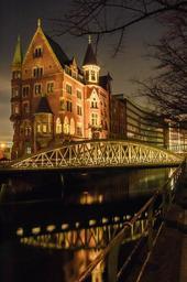 Keywords: hamburg speicherstadt building long exposure architecture illuminated lights night