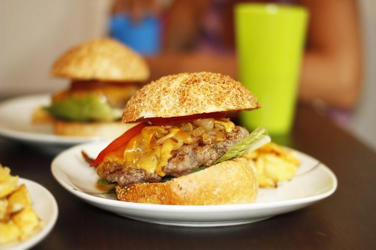 Keywords: hamburger fast lettuce bun beef gourmet cheeseburger french fries onions tomatoes grilled cheese home background meat food midday bbq junk american red hamburgers steak