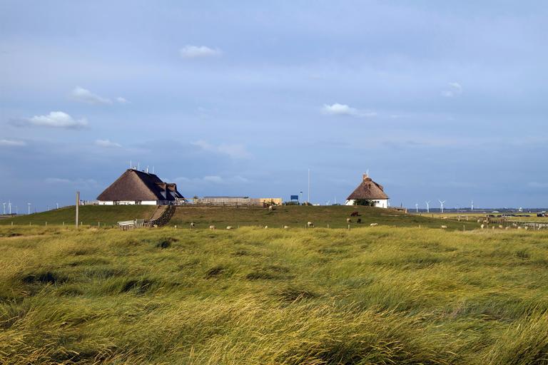 Keywords: hamburger hallig wadden sea north sea salt meadow coast hallig thatched houses national park nordfriesland