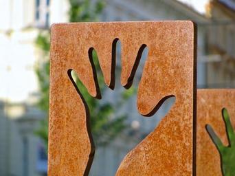 Keywords: hand finder street art sculpture object art kind greetings rusty sunny day