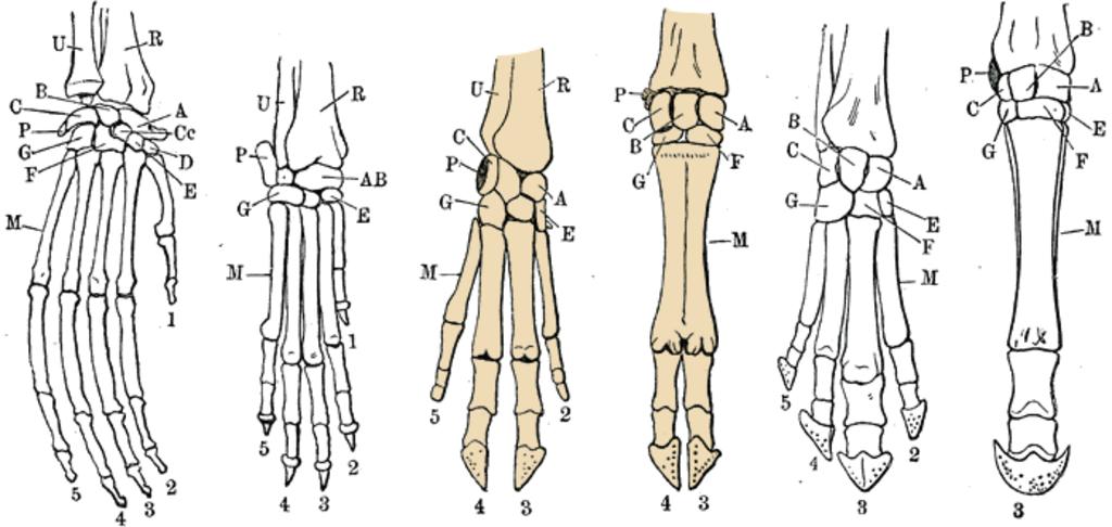 Keywords: Hand skeletons with Artiodactyls highlighted.png en Figure from Meyers Lexicon Conversion 1888 “ Skeletons of mammalian hands Hands of even-toed ungulates are highlighted From left to right Orangutan; Dog; Swine; Cattle; Tapir; Horse Abbreviations R Radius; U Ulna; A-G Cc P carpals; A Scaphoideum; B lunar; C Triquetum ; D trapezium; E trapezoids; F Capitatum; G Hamatum; P Pisiform; Cc central carpal; M metacarpal; 1-5 thumb and digits two to five date File Handskelett MK1888 png Meyers Konversionlexikon 1888 other versions PD-old-70-1923 Mammal limb bones Homology Radius bone Phalanges Animal limb bone comparisons |