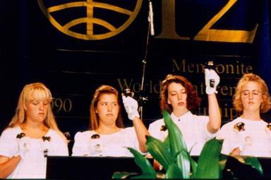 | Keywords: christopher dock high school handbell choir christopherdockhighschoolhandbellchoir mennonite world conference winnipeg manitoba canada mennoniteworldconferencewinnipegmanitobacanada groupshot people indoor Caption: Part of the Christopher Dock High School Handbell Choir of Pennsylvania, USA. Citation: Mennonite World Conference. Twelfth Mennonite World Conference, 1990, Winnipeg, Canada. Slides by T. Klassen; Script by John Dyck. X-9 Box 52 Folder 4 Slide 76. Mennonite Church USA Archives - Goshen. Goshen, Indiana. Caption: Part of the Christopher Dock High School Handbell Choir of Pennsylvania, USA. Citation: Mennonite World Conference. Twelfth Mennonite World Conference, 1990, Winnipeg, Canada. Slides by T. Klassen; Script by John Dyck. X-9 Box 52 Folder 4 Slide 76. Mennonite Church USA Archives - Goshen. Goshen, Indiana. |