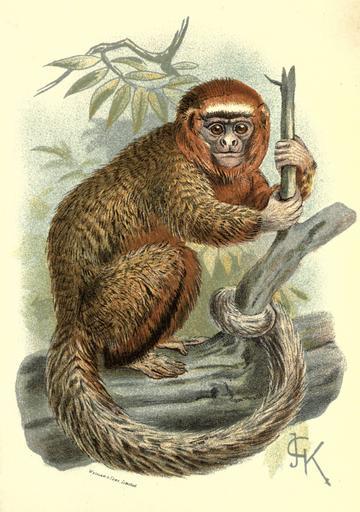 Keywords: Handbook to the Primates Plate 14.jpg Plate XIV Ornate Titi Callithrix ornatus 1894 Handbook to the Primates Vol I http //archive org/details/handbooktoprimat01forbiala Henry Ogg Forbes 1851-1932 Species Plates by John Gerrard Keulemans 1842 “1912 PD-old-auto-1923 1912 Handbook to the Primates Callicebus ornatus |